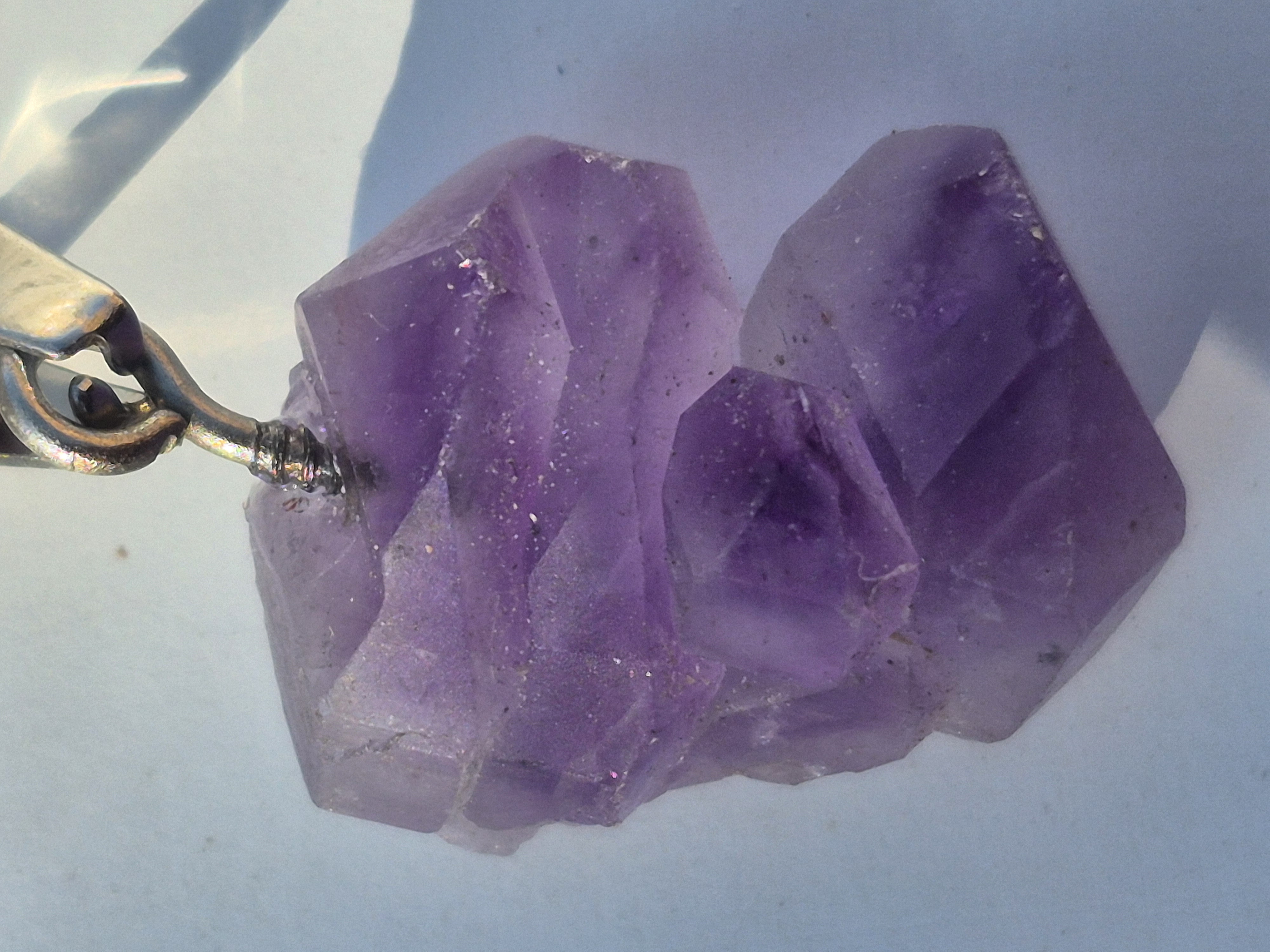 گردن آویز بلور یا کریستال آمیتیست به رنگ بنفش ، دارای پین مخصوص اتصال زنجیر ، زیور مناسب بانوان