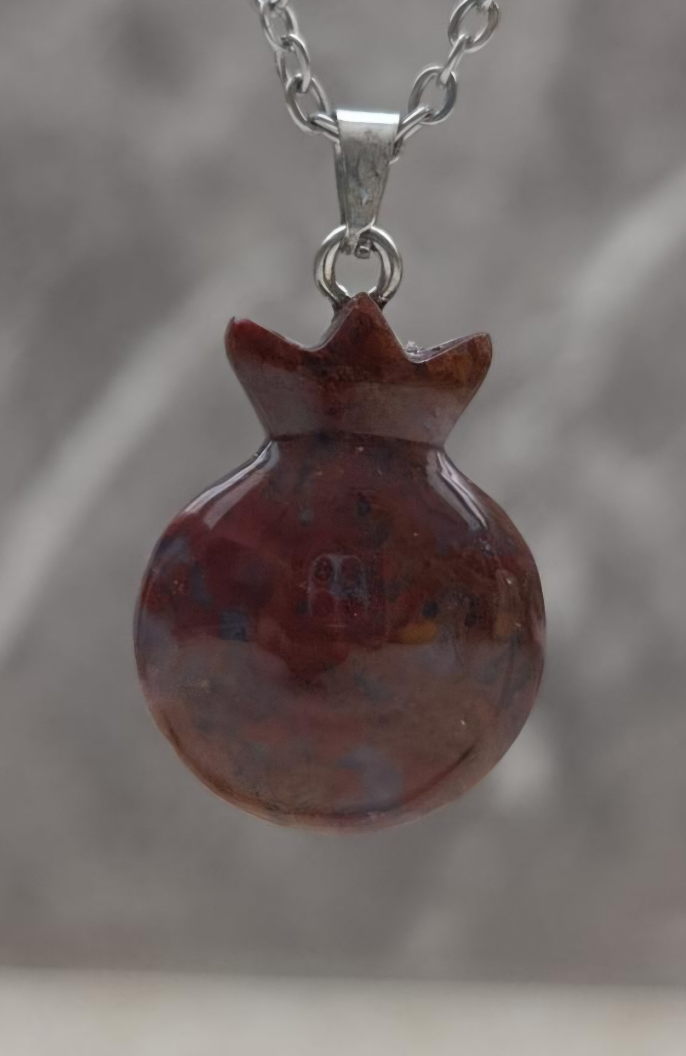 گردن آویز جاسپر تراش به شکل انار مناسب تم یلدا ، کادوی شب یلدا ، دارای پین مخصوص اتصال زنجیر ، زیور مناسب شب یلدا و روز مره