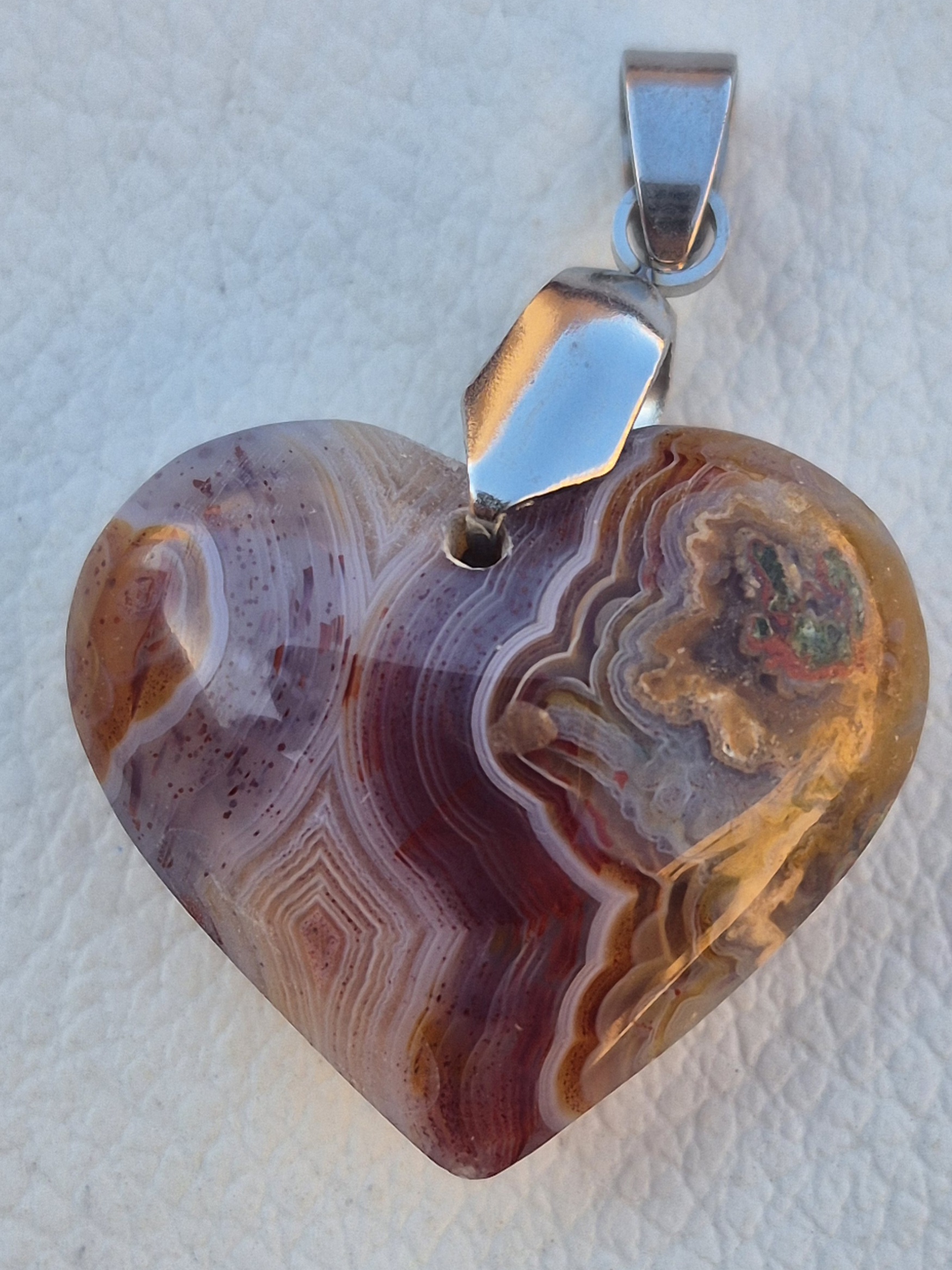 عقیق سلیمانی خط رنگی تراش قلب مخصوص گردنبند سنگ اصل معدنی ، تراش دست هنگام خرید فیلتر شکن خود را خاموش نمایید
