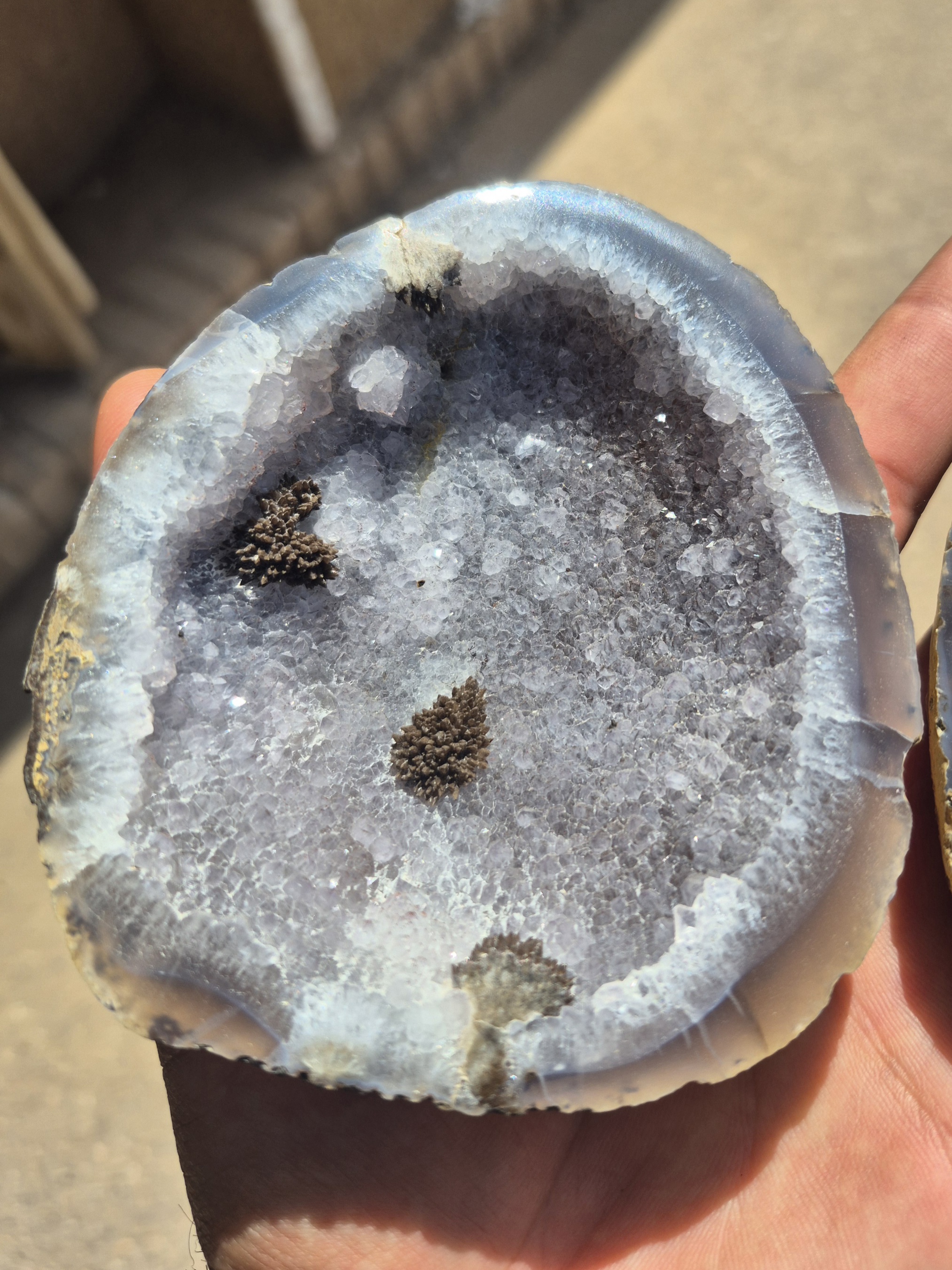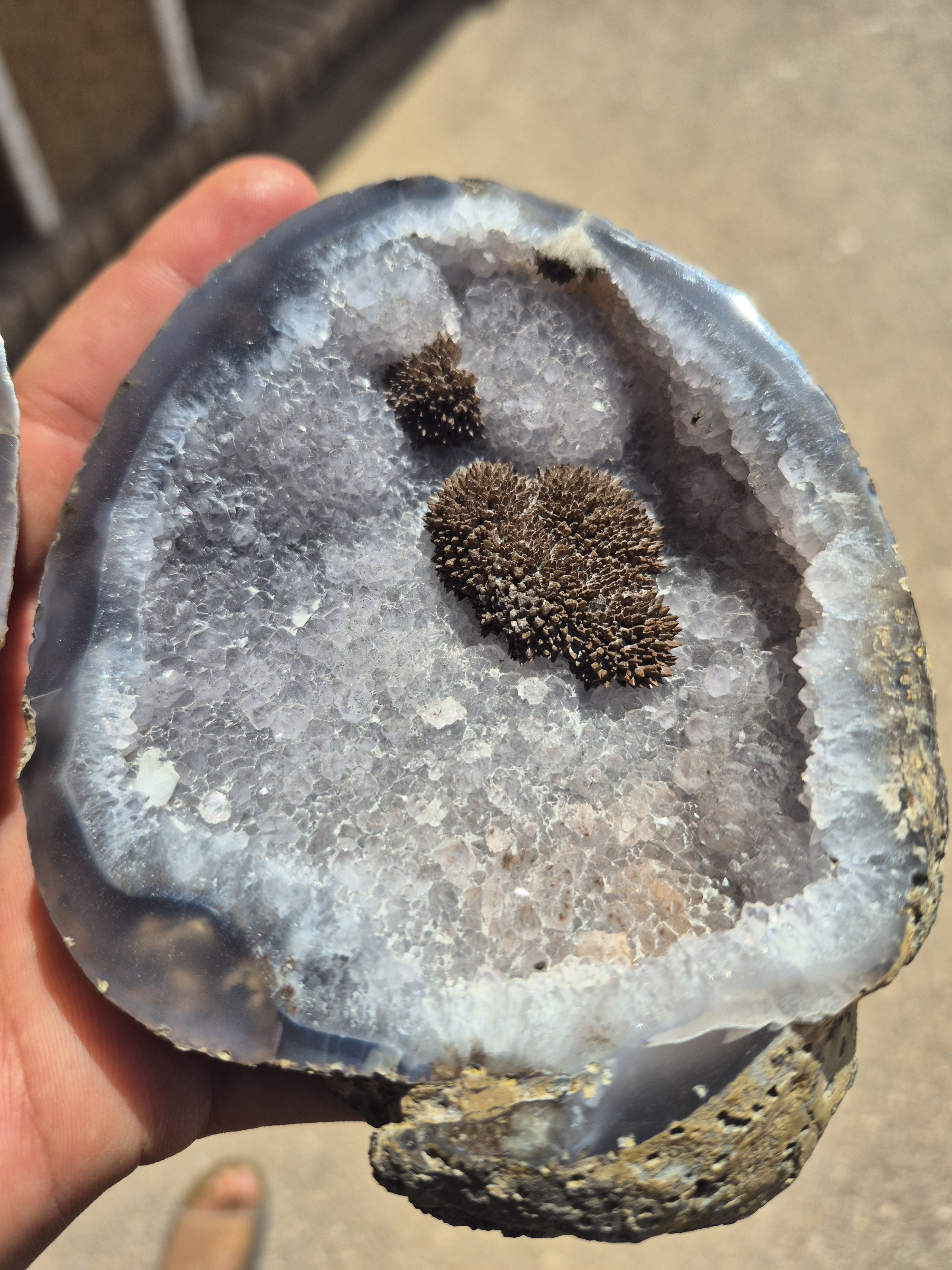 توپی برش خورده و پولیش شده آمیتیست ، به رنگ بنفش کم رنگ ، مناسب کلکسیون ، دکور و جعبه جواهر، این توپی دارای همرشدی گوتیت بوده که بسیار خاص و کم نظیر است
