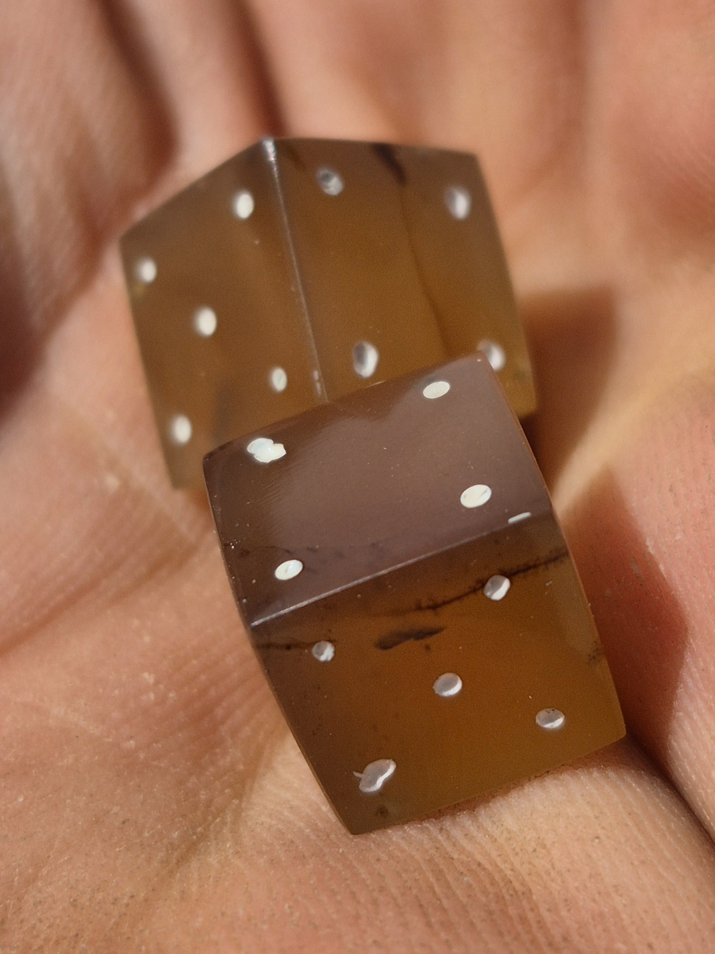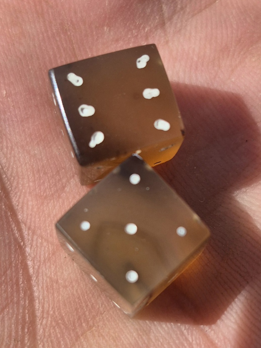 یک جفت تاس سنگی عقیق ، تراش دست ، رنگ عسلی،سایز ۱۱ میلیمتر،اصل و معدنی میتوانید جهت سفارش موارد خاص با شماره ۰۹۱۵۰۹۱۰۲۸۲ تماس بگیرید