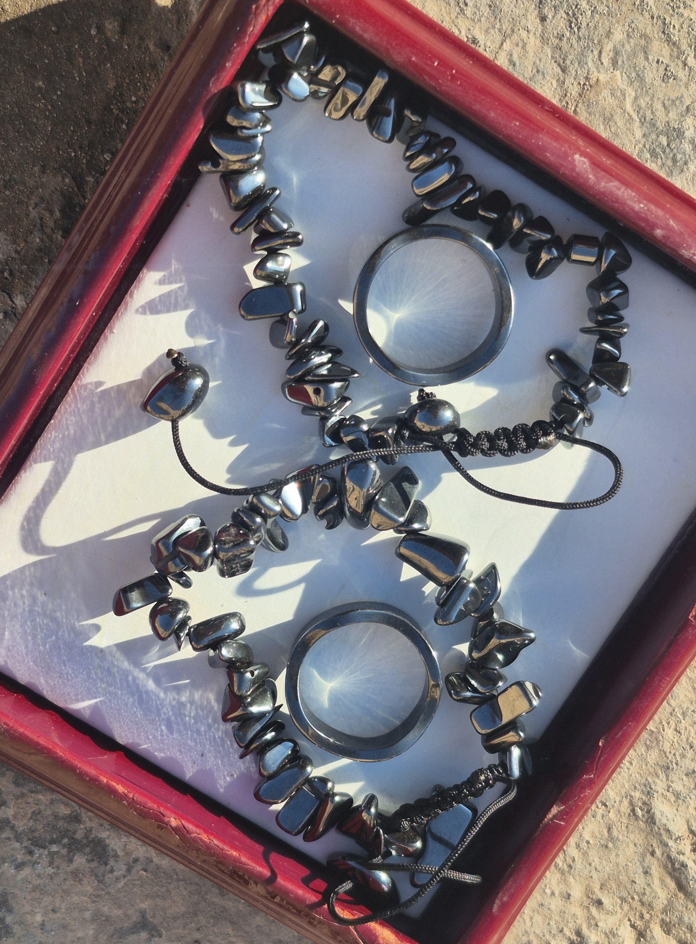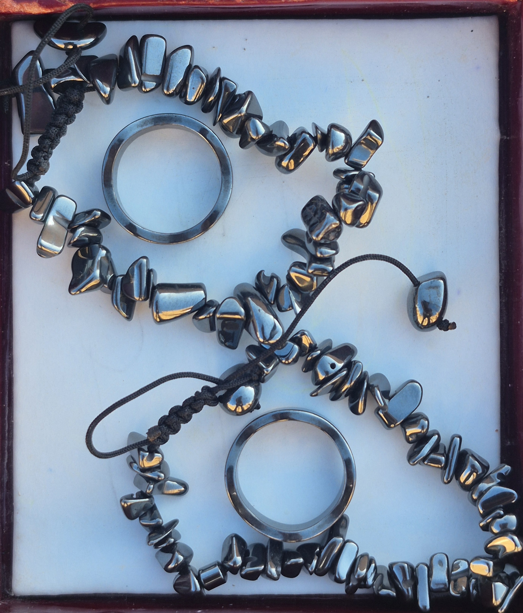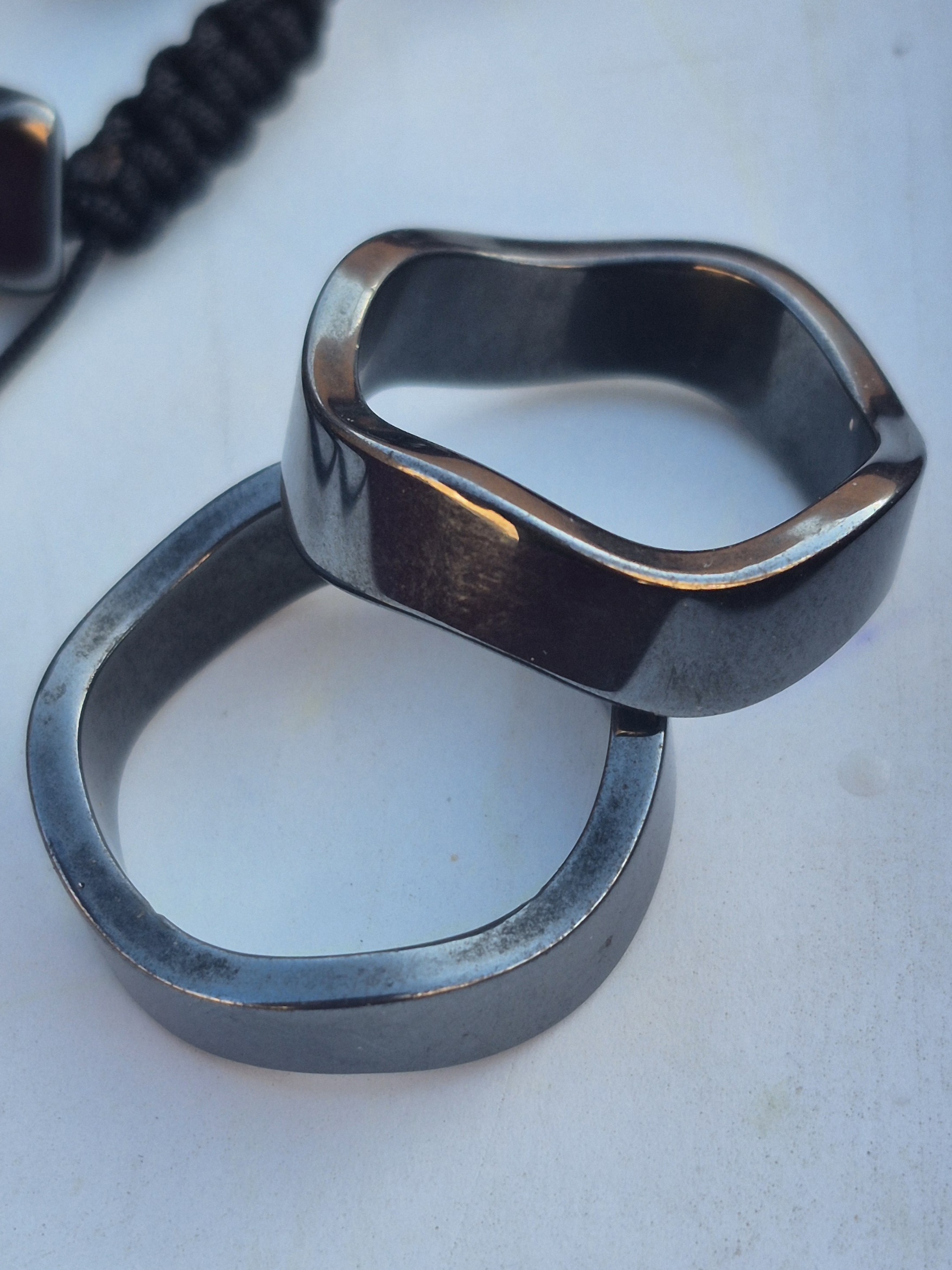 حلقه حدید ، ترند و لوکس ، مشهور به سنگ درمانی و شجاعت میباشد، روزانه بیش از سه ساعت استفاده نشود ، دستبند ست موجود در تصویر را میتوانید جداگانه از همین سایت تهیه نمائید