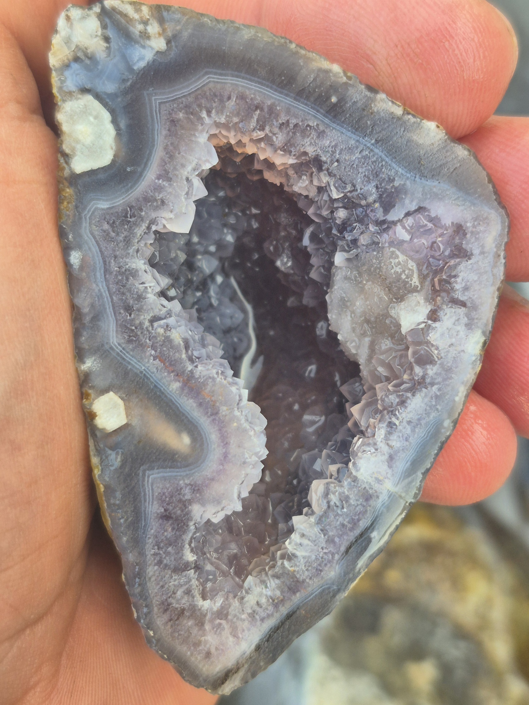توپی برش خورده آمیتیست ،خوش رنگ ، دارای همرشدی و بابا قوری ، مناسب کلکسیون ، دکور،جای جواهر تصویر بدون پولیش گرفته شده ،در صورت درخواست محصول نهایی پولیش اینه ای تحویل می شود توسط دکمه های بالا میتوانید انتخاب کنید پولیش انجام شود یا خیر