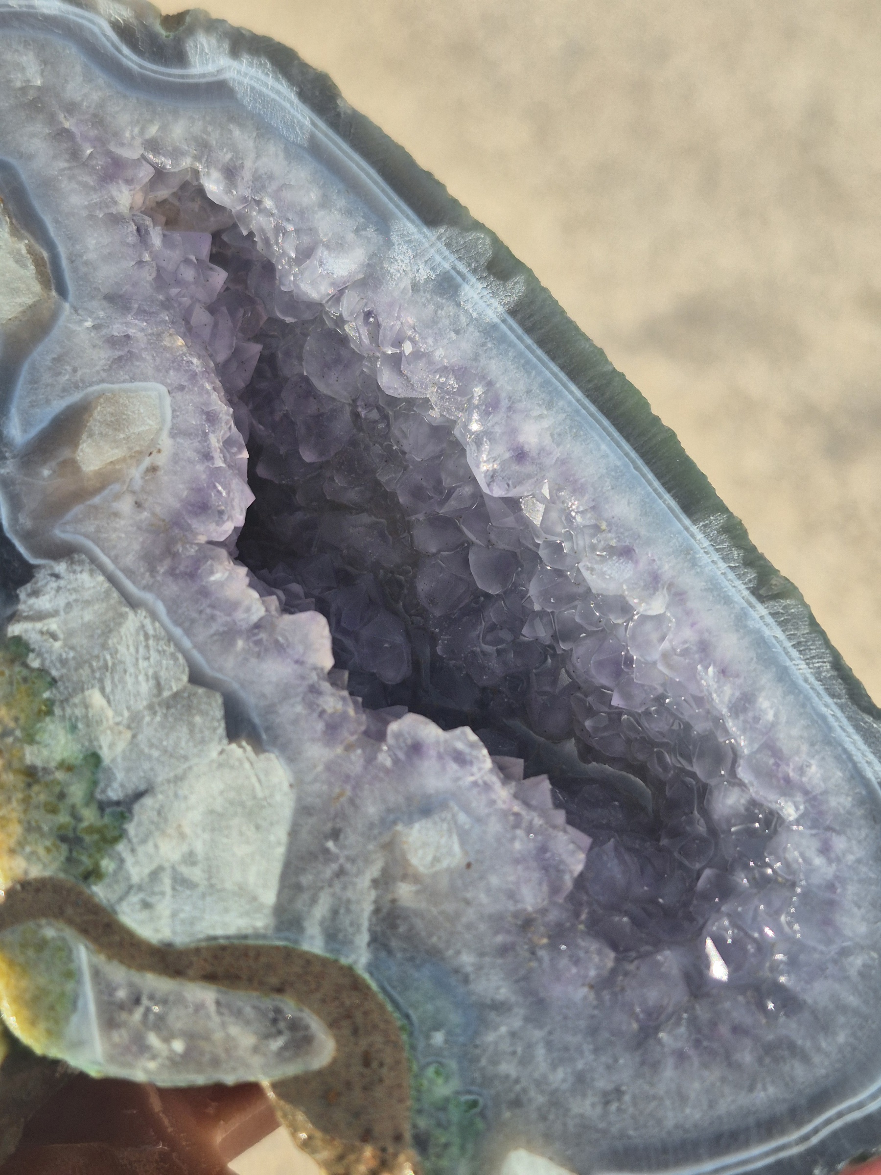توپی برش خورده آمیتیست بنفش ،پررنگ ، حاشیه سلیمانی ، مناسب کلکسیون ، دکور، تصویر بدون پولیش گرفته شده ،در صورت درخواست محصول نهایی پولیش اینه ای تحویل می شود توسط دکمه های بالا میتوانید انتخاب کنید پولیش انجام شود یا خیر
