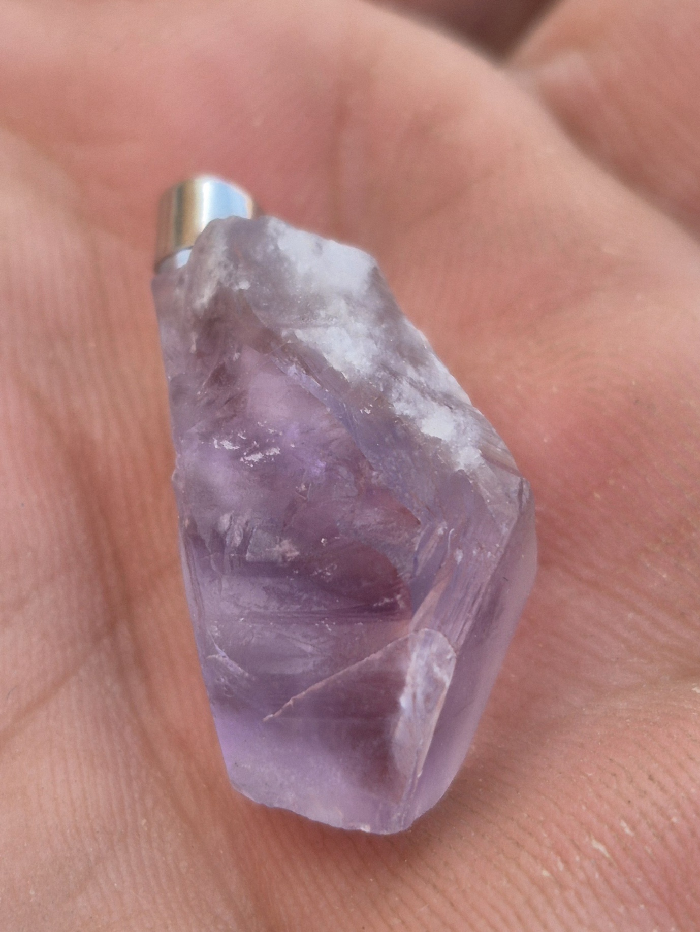گردن آویز بلور یا کریستال آمیتیست به رنگ بنفش ، اصل معدنی ،رنگ طبیعی و بدون بهسازی و تشدید رنگ، دارای پین مخصوص اتصال زنجیر ، زیور مناسب بانوان