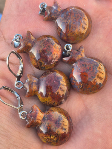عقیق پاییزه تراش قلب سایز مدال گردن آویر دوطرف دامله